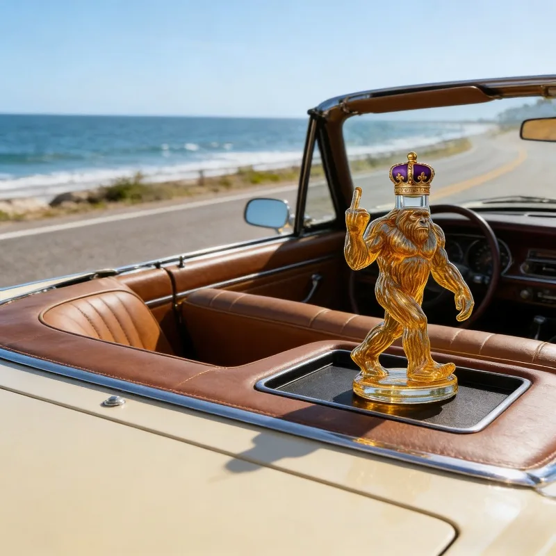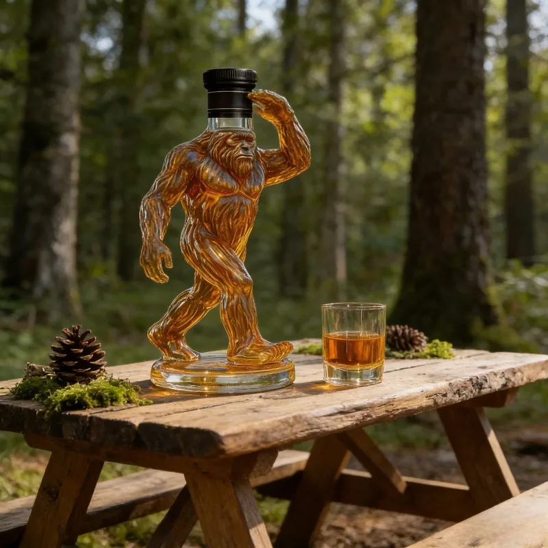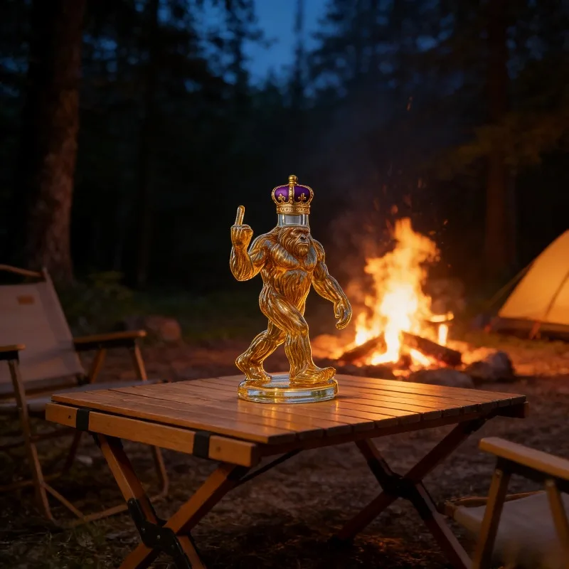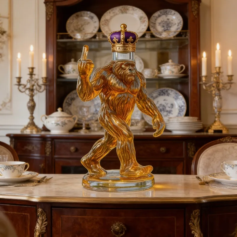 Collectible Sasquatch Whiskey Decanter with Royal Crown, Funny Middle Finger Glass Liquor Bottle for Man Cave & Camping Gifts